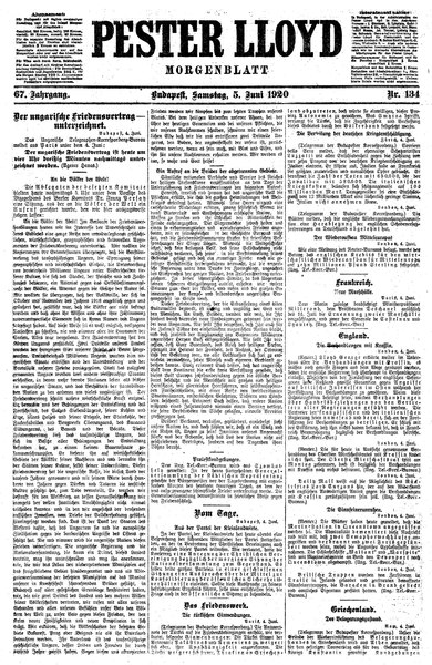 Овај тип насловне стране, карактеристичан за водеће мађарске дневнике у лето 1920. године, показује начин на који је Тријанон од самог почетка уоквирен као морална и егзистенцијална катастрофа. Наслови су кратки, императивни и емоционално набијени, често користећи појмове попут „диктат“, „распеће“ или „национална смрт“. Визуелна хијерархија текста (крупна слова, доминација наслова над телом вести) сведочи о томе да примарни циљ није информисање, већ афективна мобилизација читалаца. Овакве насловне стране играле су кључну улогу у трансформацији Тријанона из дипломатског документа у трајни симбол националне неправде.