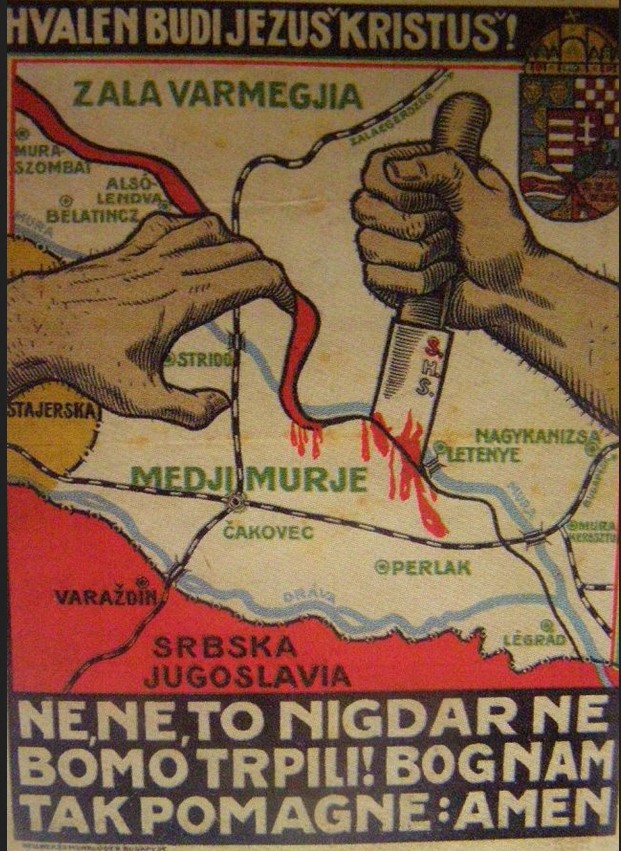 У таквом дискурсу, новонастале државе на простору бивше Угарске, пре свега Краљевина Југославија, нису посматране као легитимни политички субјекти, већ као вештачке творевине великих сила. Јужни Словени, а нарочито Срби, у том контексту добијају улогу узурпатора и „лажних победника“ – народа који је, по мађарском наративу, награђен туђом крвљу и дипломатским манипулацијама, а не сопственим цивилизацијским капацитетом или историјским правом. Победа Србије у Првом светском рату систематски је делегитимисана, док је њена државна експанзија приказивана као облик балканског империјализма, супротстављен „културној мисији“ Мађара у Панонској низији.
